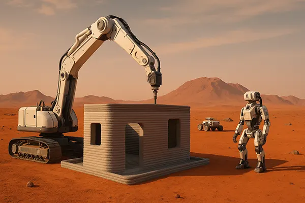 La construction robotique est encore plus cruciale dans les contextes extraterrestres, en particulier sur Mars, où la présence humaine est limitée et l’environnement hostile. L’approche clé est l’utilisation des ressources in situ (ISRU), où les robots utilisent des matériaux locaux comme le régolithe pour construire, réduisant ainsi la cargaison à transporter depuis la Terre. La NASA, l’ESA et des entreprises privées développent des systèmes capables d’installer les bases de manière autonome avant l’arrivée des astronautes.